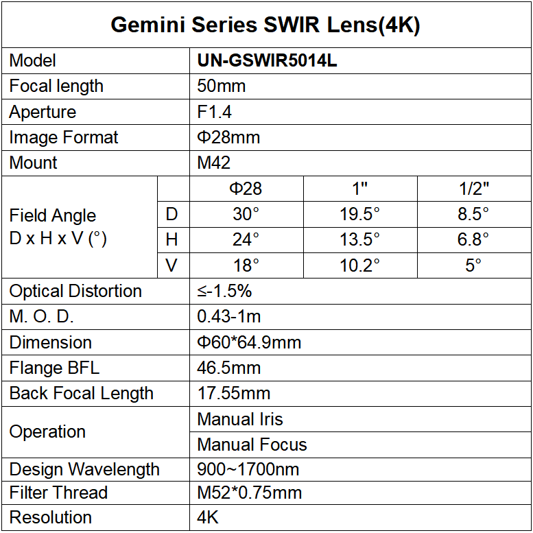 · Longitud de onda: 900-1700m· Gran apertura, hasta F1.4