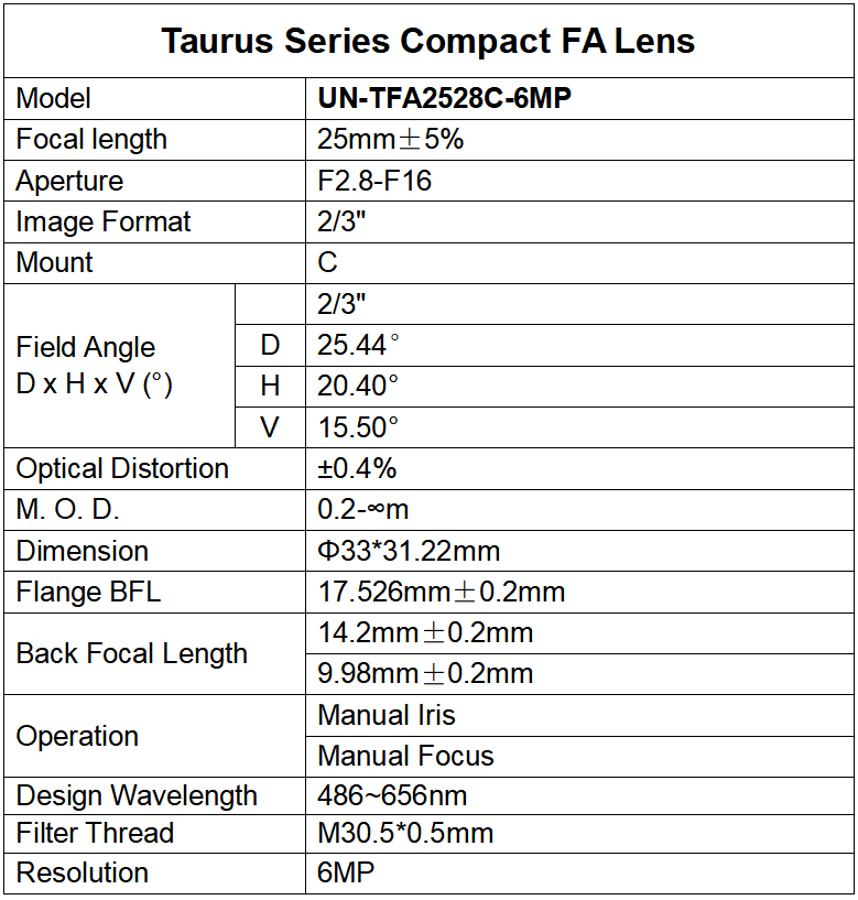 Lente FA compacta  serie Taurus  ( 10 MP)